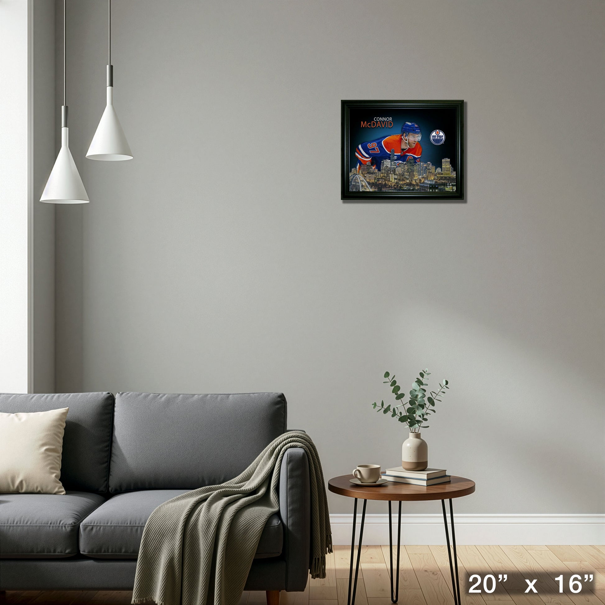 Connor McDavid 16x20 Framed Skyline Print Edmonton Oilers