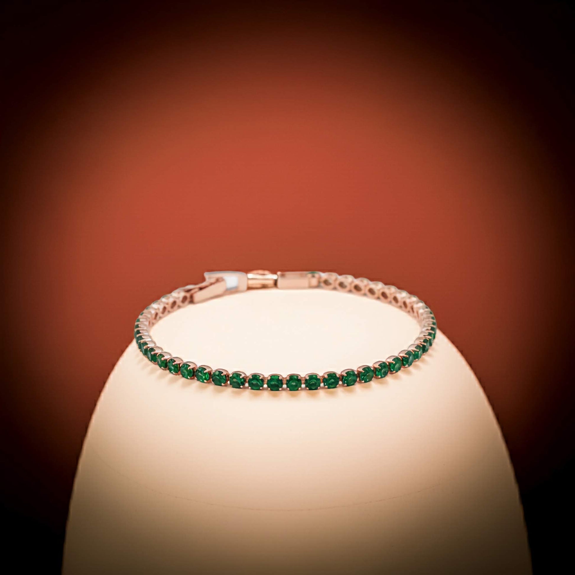 Each stone is carefully handset to ensure a ever-lasting shine, while the secure clasp provides a comfortable and durable fit. Whether paired with casual attire or an evening ensemble, the Emerald Glow Tennis Bracelet adds a touch of effortless luxury to your look.