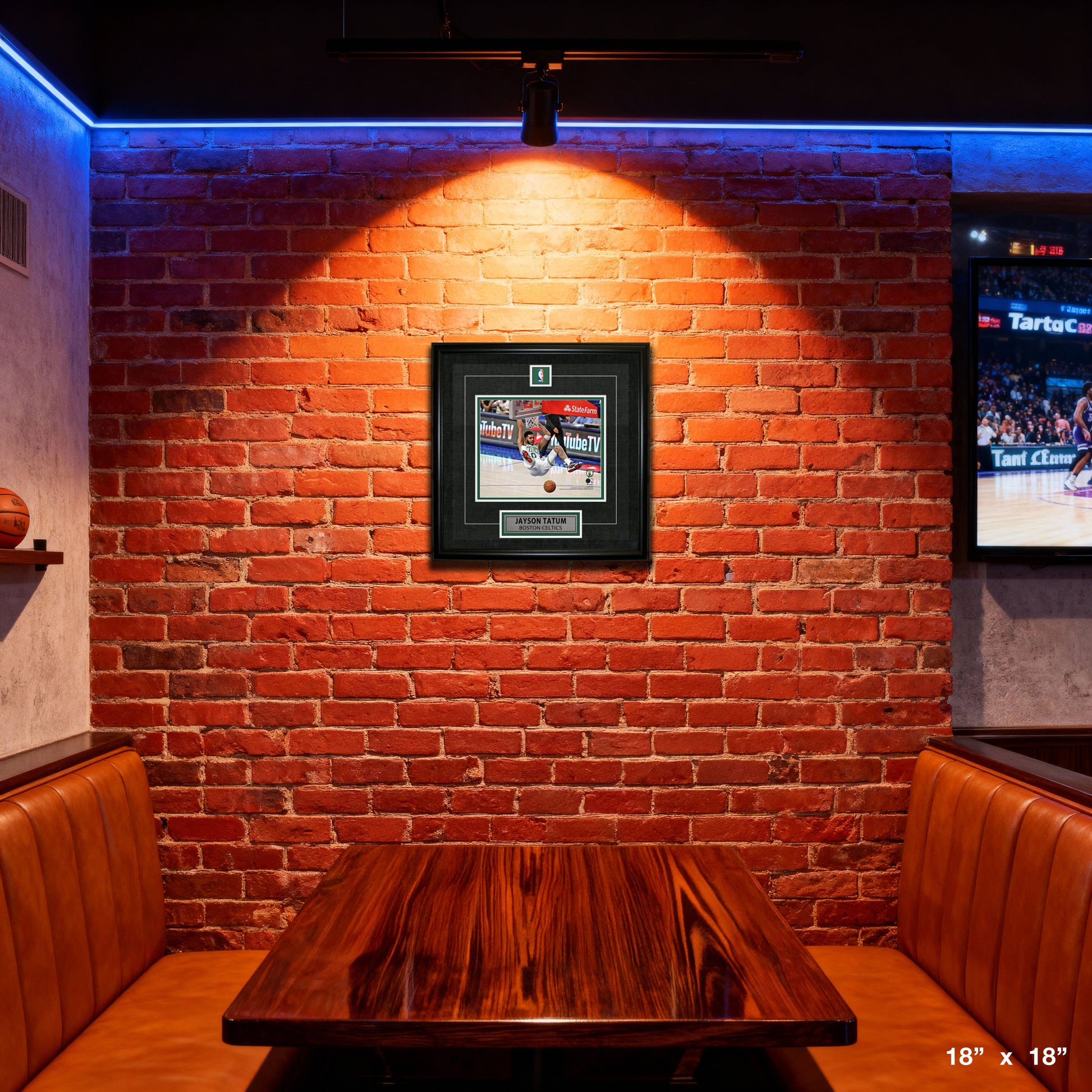 This image of Jayson Tatum is printed on high quality photo paper and then being professionally framed. This photo is officially licensed by The National Basketball Association (NBA). Made in Canada. Finished Size:18x18"
