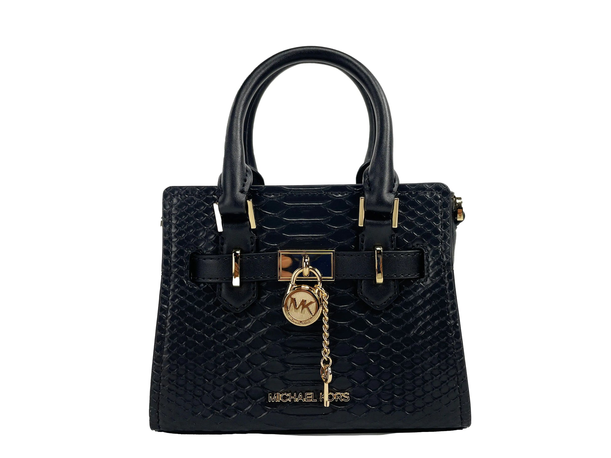 Michael Kors Hamilton XS Small Black Snake Skin Crossbody Bag
