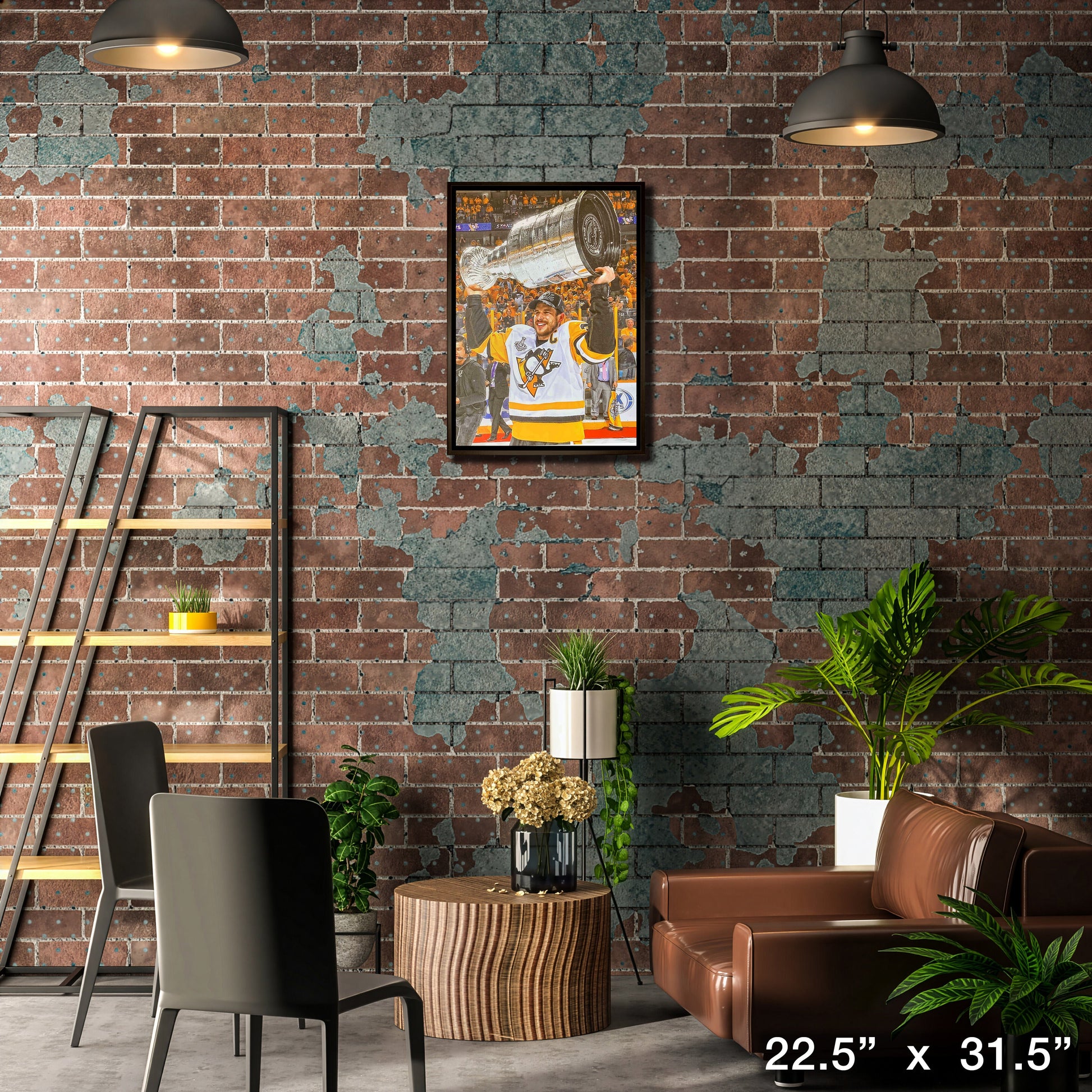 Sidney Crosby Pittsburgh Penguins Framed 20x29 Raising Cup Canvas