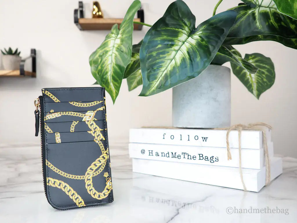 Features: Zip Compartment, 5 Card Slots, Medusa Head Accent