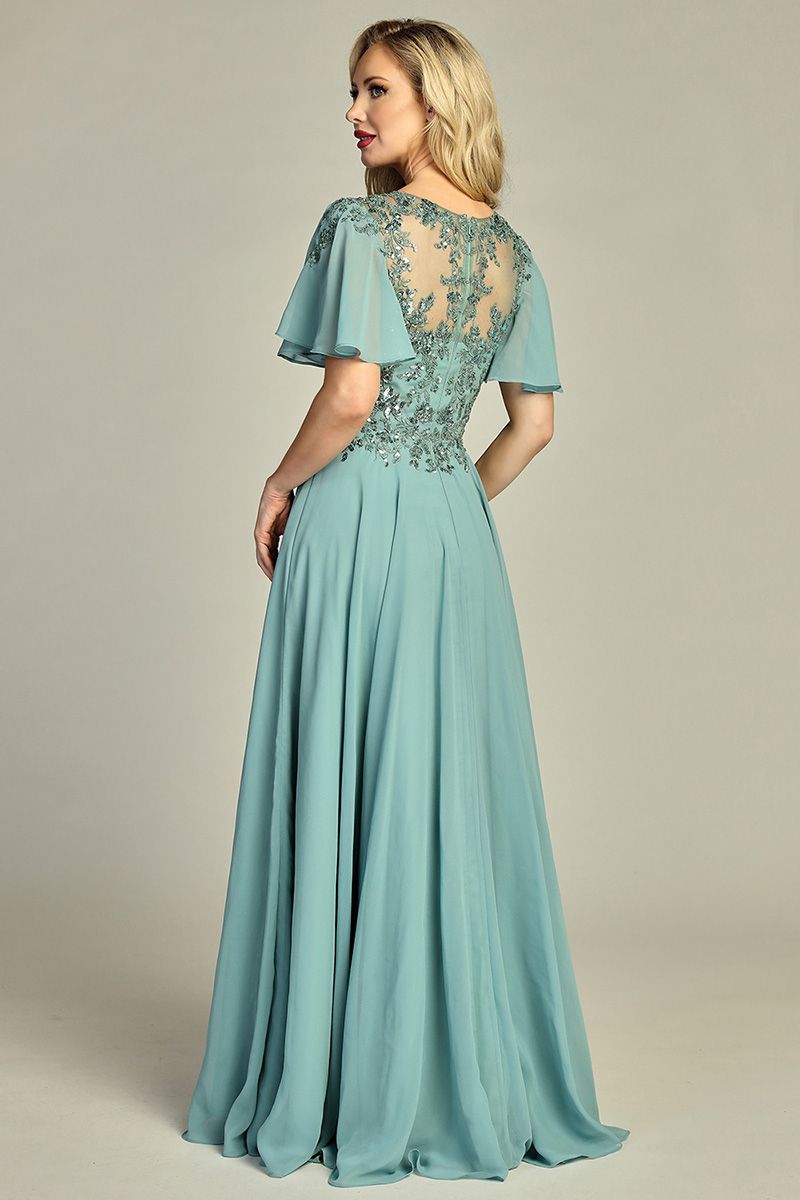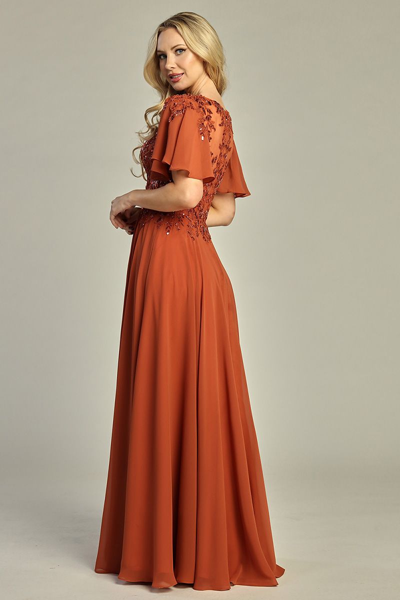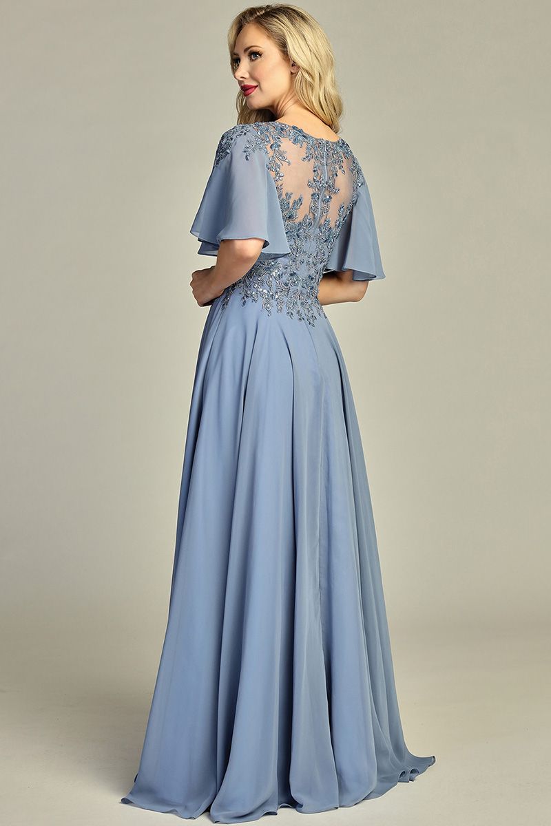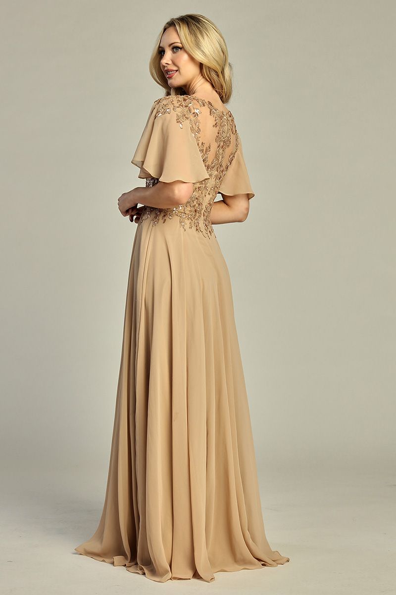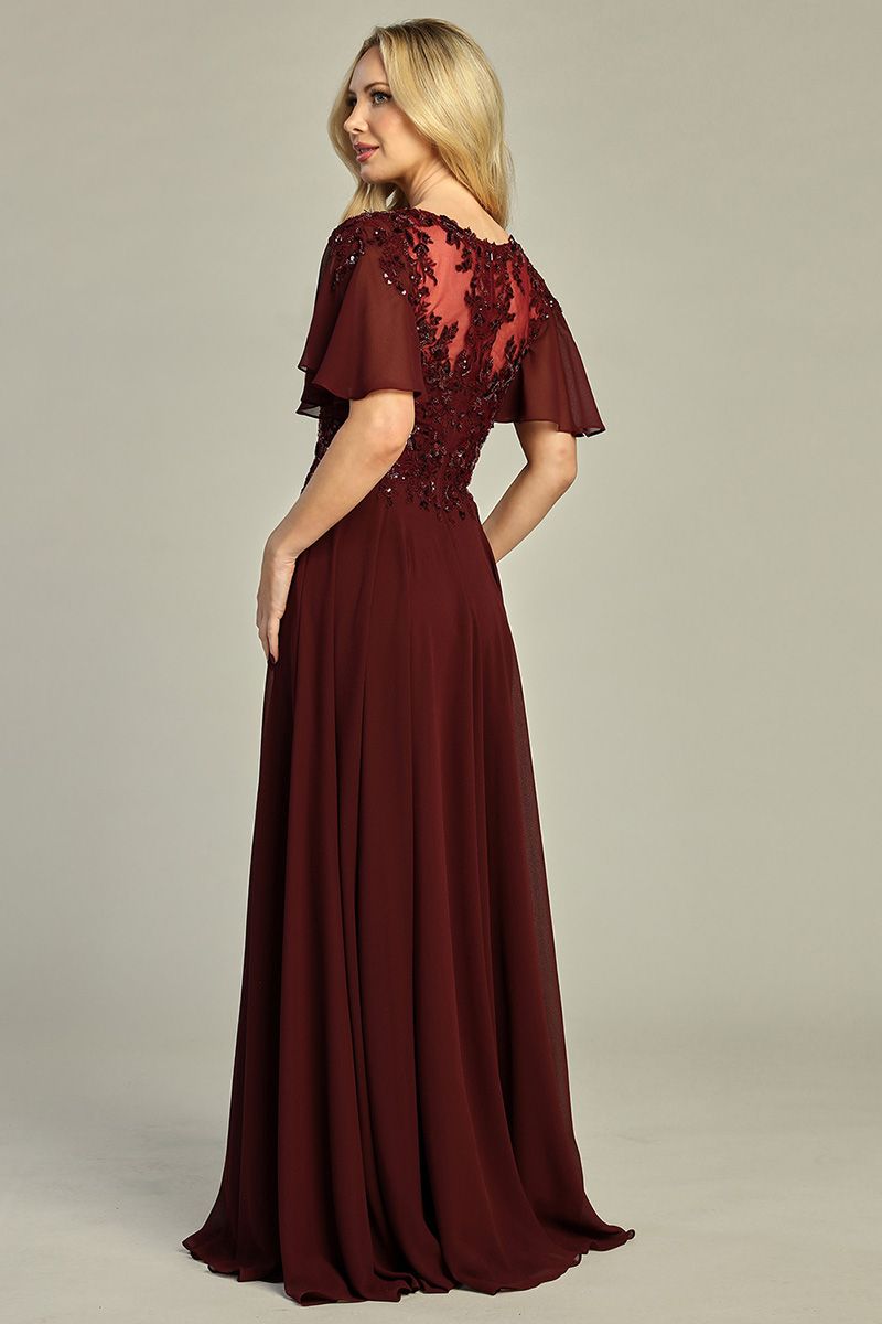 CHIFFON A-LINE BEADED LACE BODICE DRESS