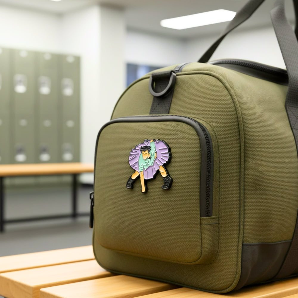Capture one of the most hilariously absurd moments in '90s comedy with this Ace Ventura "Tutu" enamel pin! This vibrant collectible features the iconic pet detective in his unforgettable purple tutu and biker boots, striking a classic, dramatic pose. It's a perfect, funny tribute to Jim Carrey's most famous role and a fantastic way to showcase your love for the film's wild humour. Show off your playful side with this striking pin, which measures approximately 3.5 centimetres wide and comes with a secure rubber clutch backing.