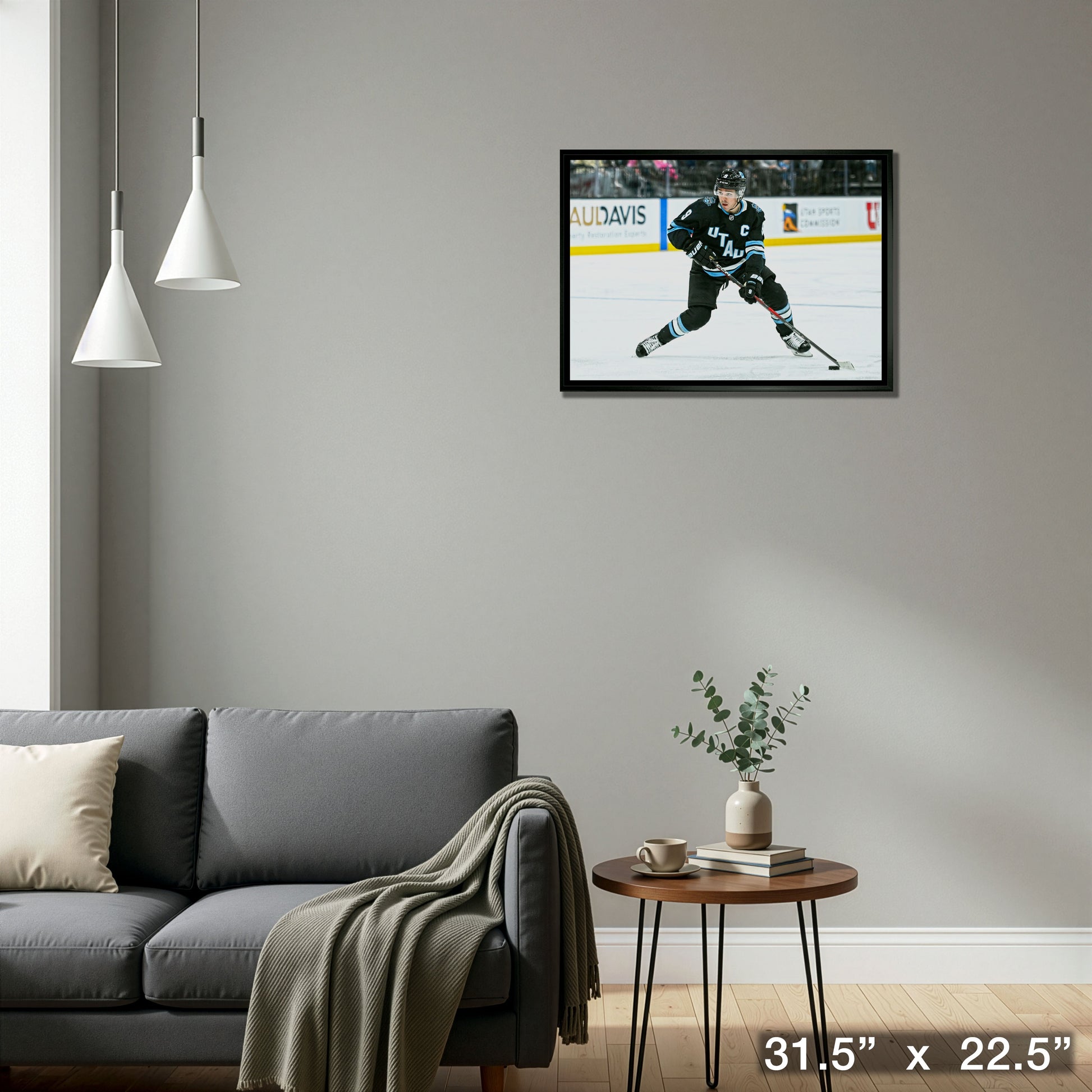 This image of Clayton Keller is printed on high quality art canvas and then professionally stretched and framed. This canvas is officially licensed by the National Hockey League (NHL) and National Hockey League Players Association (NHLPA). Made in Canada.