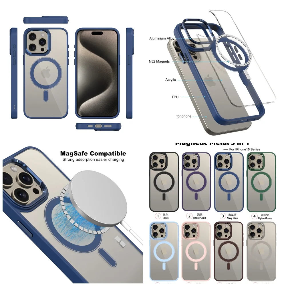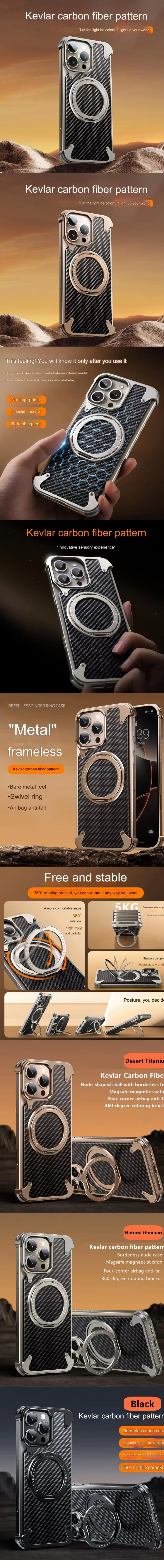 Hot Aluminum Alloy Carbon Fiber Metal Case for iPhone 16 Pro Max With 360 Magnetic Invisible Ring Stand Cover for iPhone 16 Pro