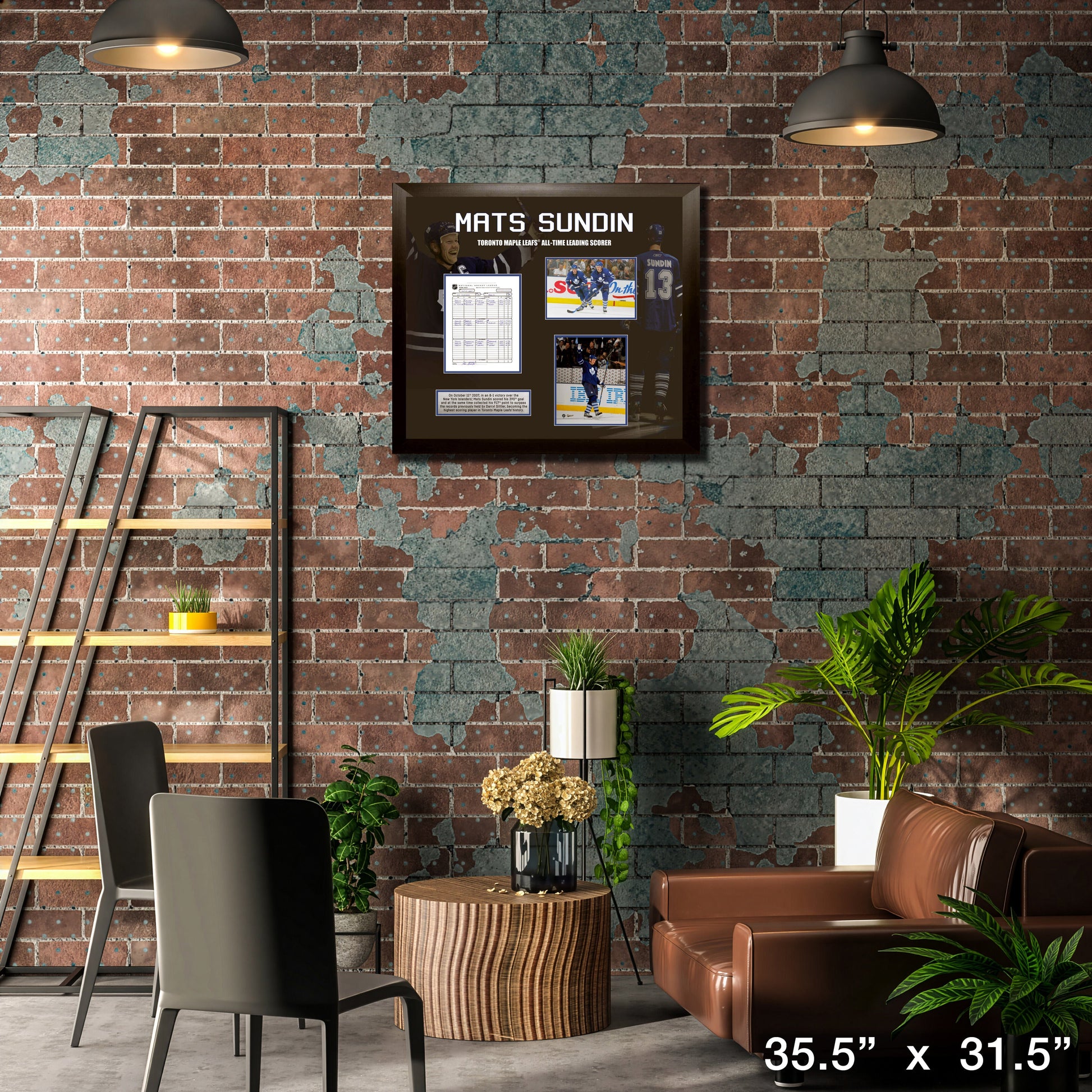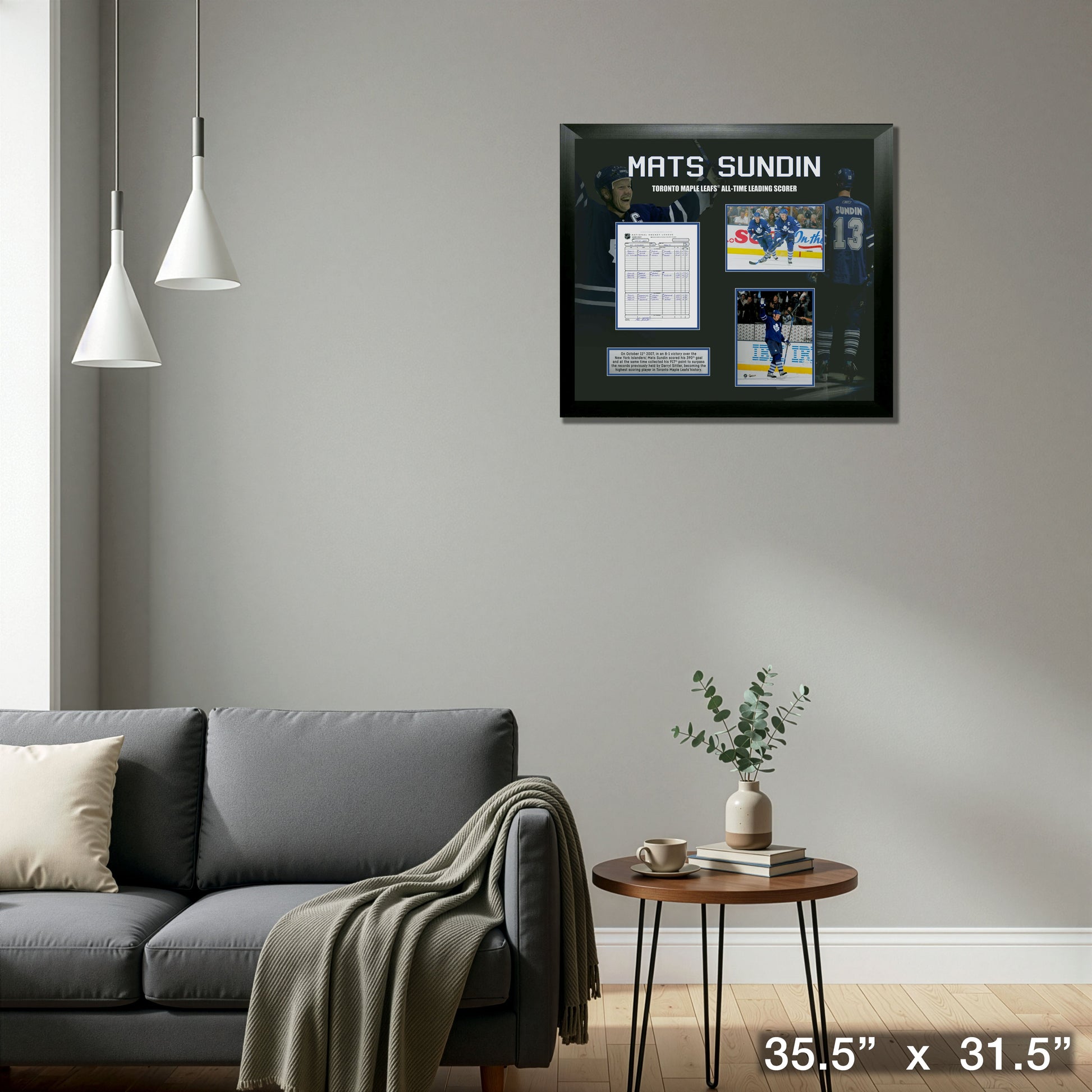 This Mats Sundin Toronto Maple Leafs All-Time leading scorer collage is professionally framed. This item is officially licensed by the National Hockey League (NHL) and National Hockey League Players Association (NHLPA).