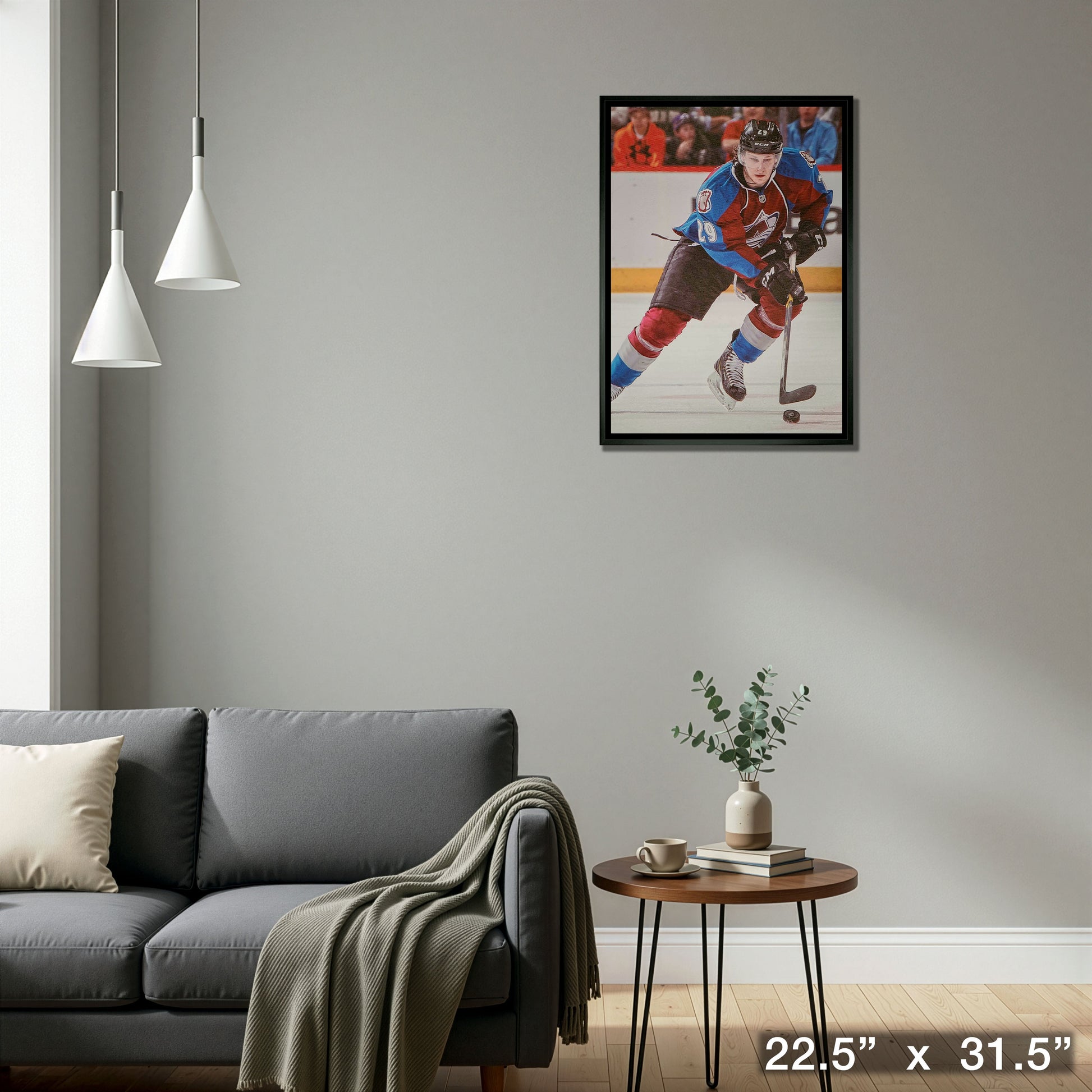 This image has been printed on high quality art canvas before being professionally stretched. This product is officially licensed by the National Hockey League (NHL) and National Hockey League Players Association (NHLPA). Made in Canada. Finished Size: 22.5 x 31.5"