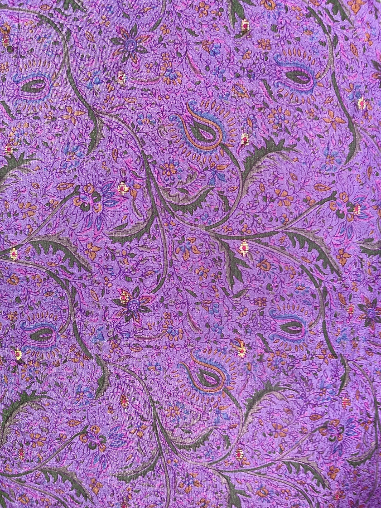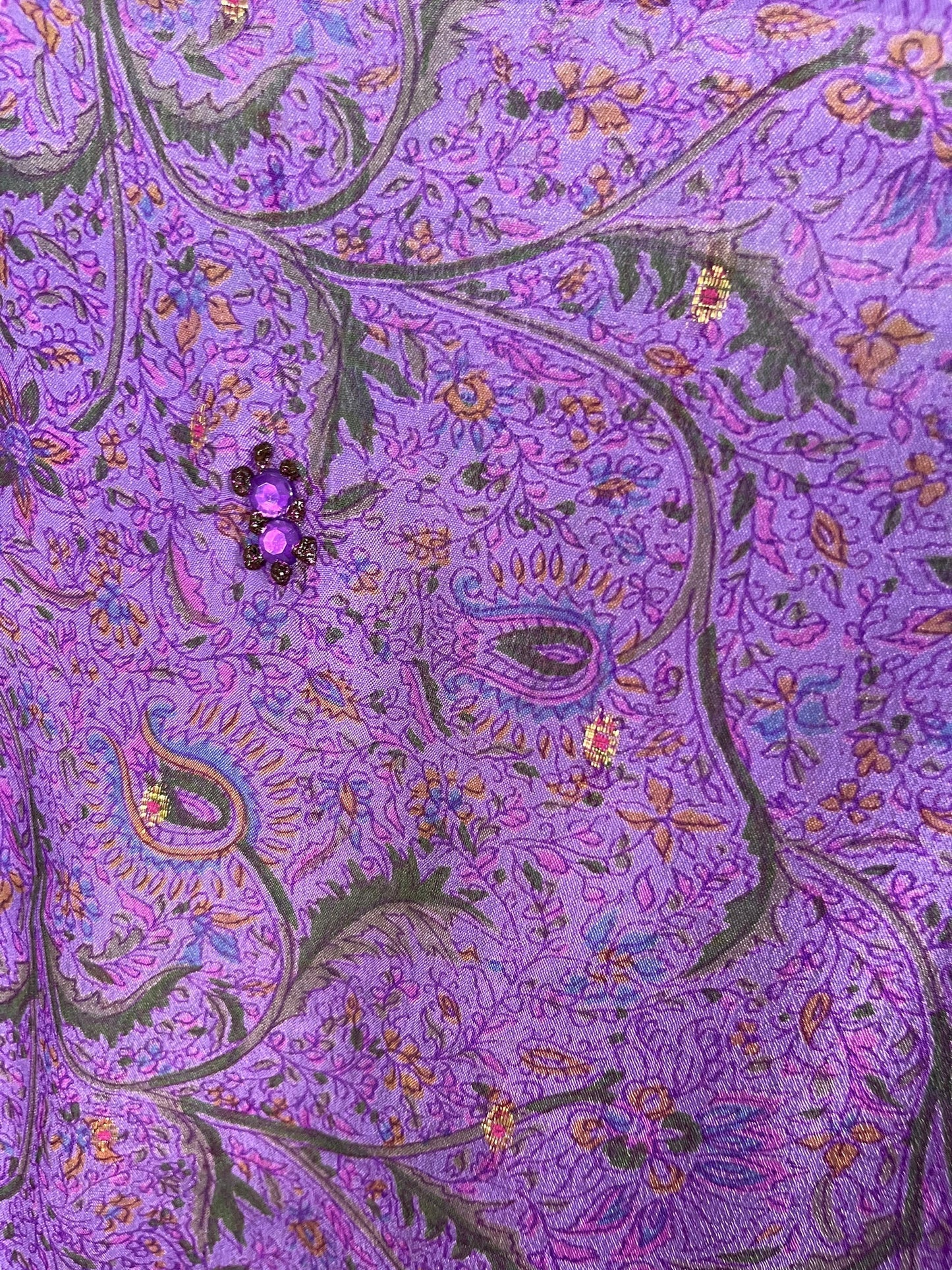 In Eastern philosophy, an Avatar is an incarnation that teaches how to evolve virtues of the past into the present. The Pure Upcycled Silk Avatar Collection is made from vintage pure silk saris, chosen and worn by women in the past to celebrate their lives.If you look very closely, you will see that the silks in this collection show some of the character of their previous incarnations through the appliqués that have been lovingly applied to bring new life to the fabric. This piece is a reminder that we are part of a collective journey to which we all add a little something.