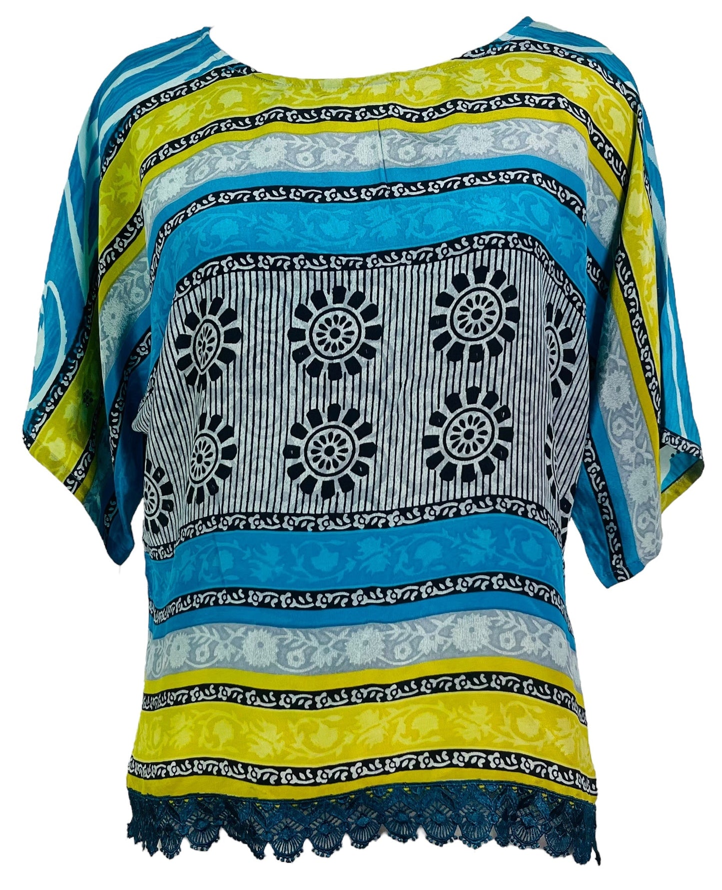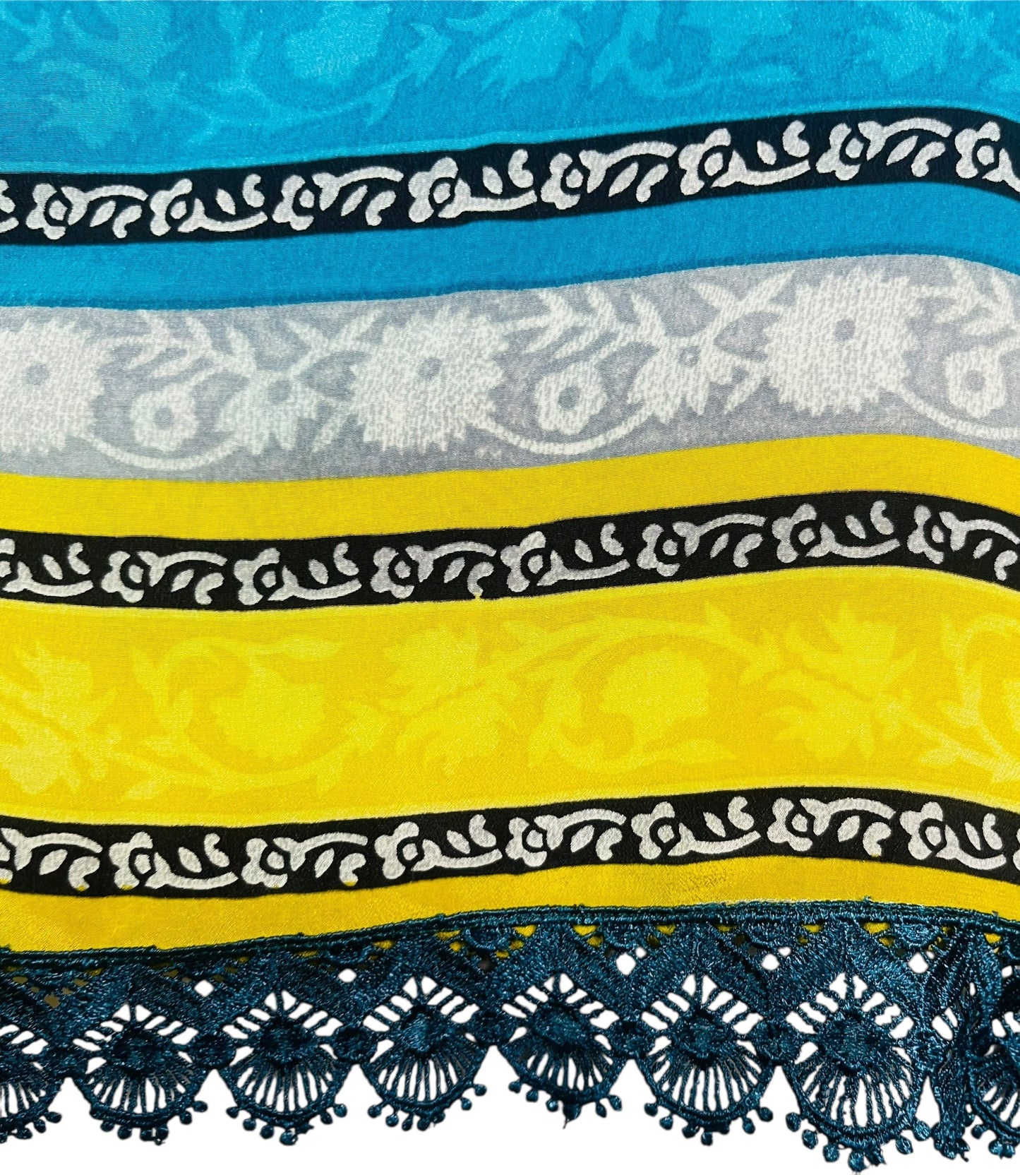 In Eastern philosophy, an Avatar is an incarnation that teaches how to evolve virtues of the past into the present. The Pure Upcycled Silk Avatar Collection is made from vintage pure silk saris, chosen and worn by women in the past to celebrate their lives.If you look very closely, you will see that the silks in this collection show some of the character of their previous incarnations through the appliqués that have been lovingly applied to bring new life to the fabric. This piece is a reminder that we are part of a collective journey to which we all add a little something.