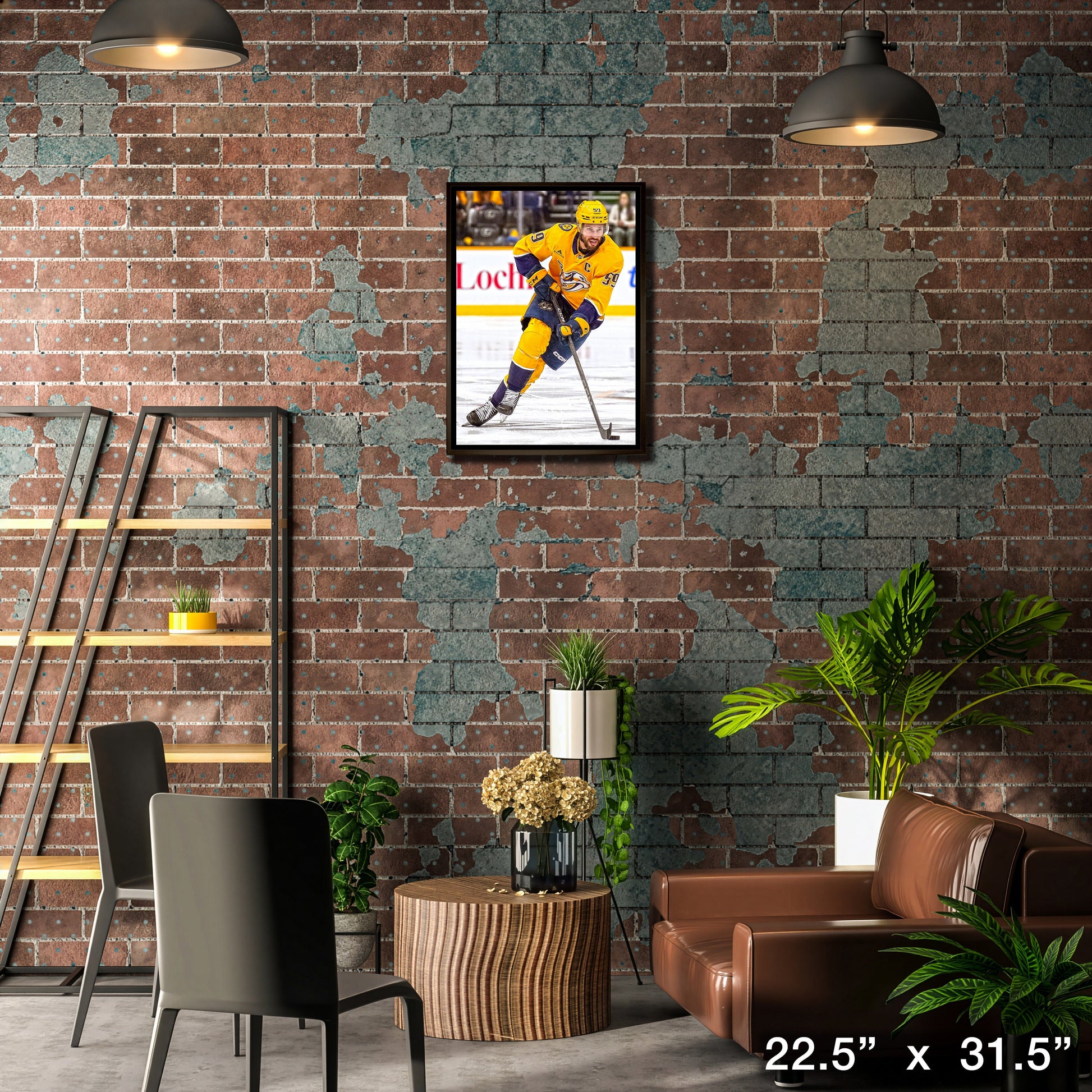 This image of Roman Josi is printed on high quality art canvas and then professionally stretched and framed. This canvas is officially licensed by the National Hockey League (NHL) and National Hockey League Players Association (NHLPA). Made in Canada.. Finished Size: 22.5 x 31.5"
