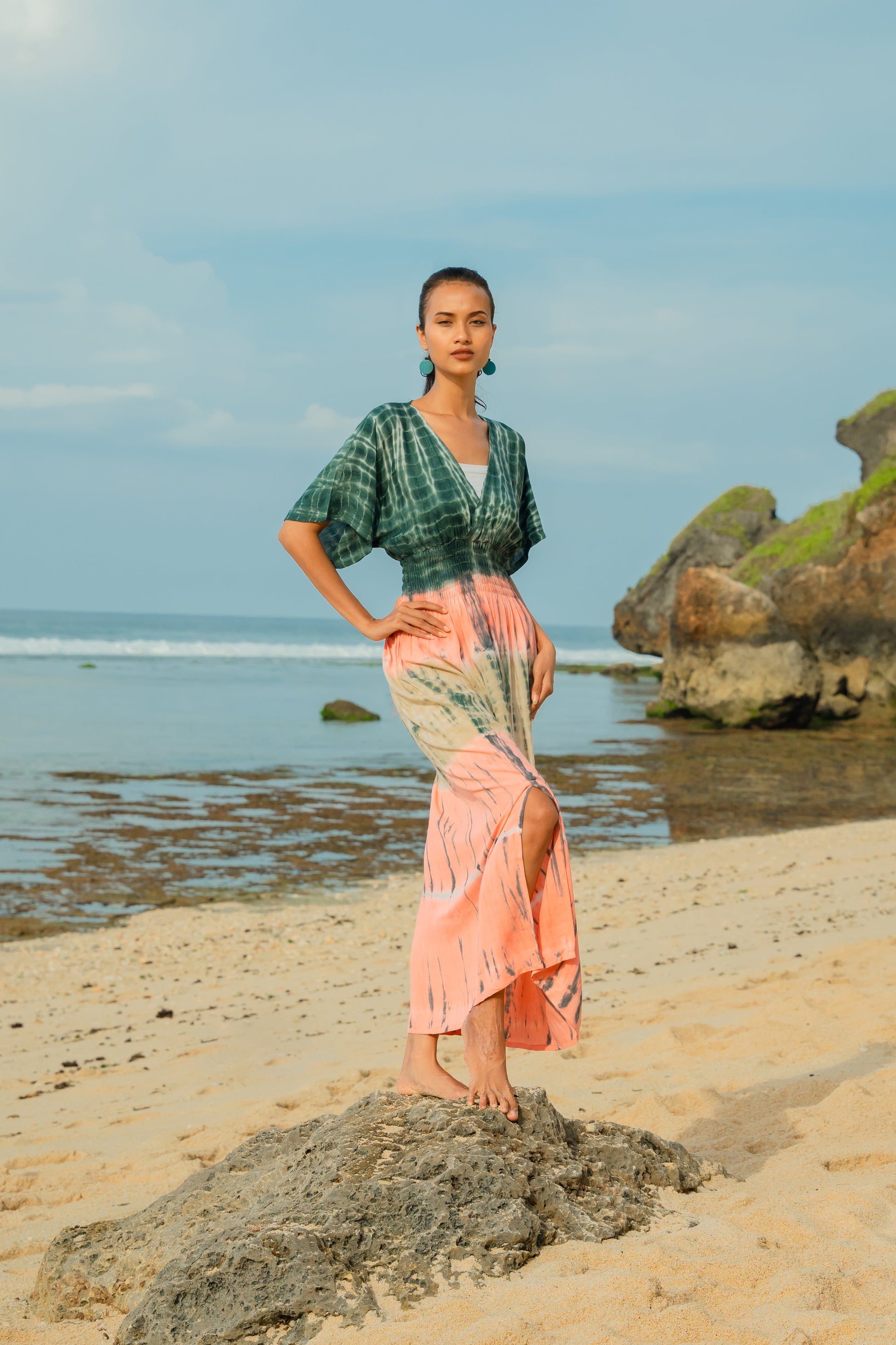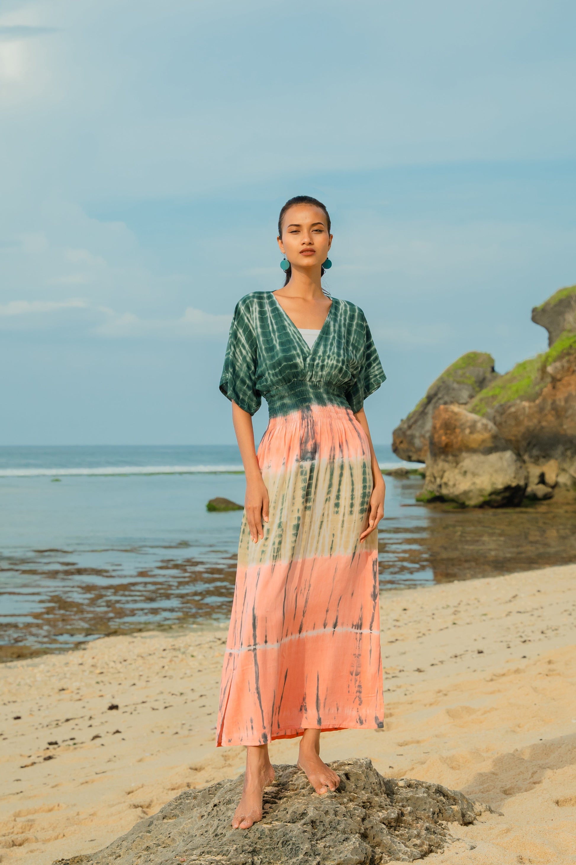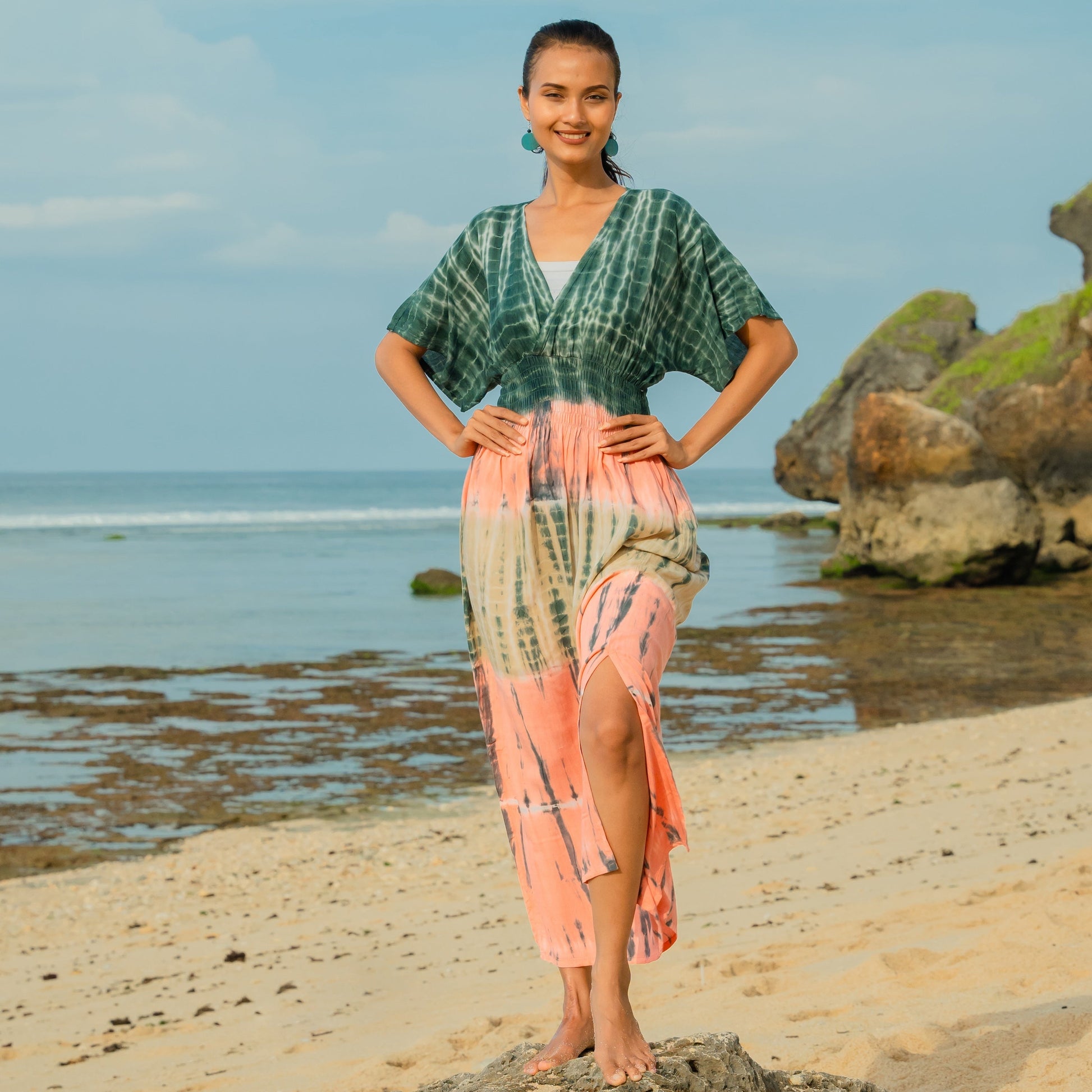 Add a touch of effortless style to your summer wardrobe with our tie dye Maxi Dress! Dress it up for a night out or wear it casually to the beach. This versatile dress is perfect for any occasion. Don't miss out on this must-have piece for the season!